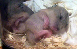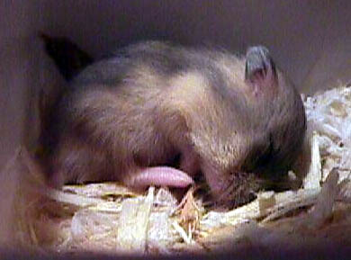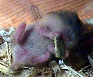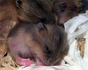 Alyssa´s babies at the age of 13 days - sleeping all around the cage. |